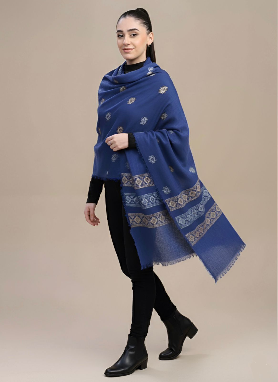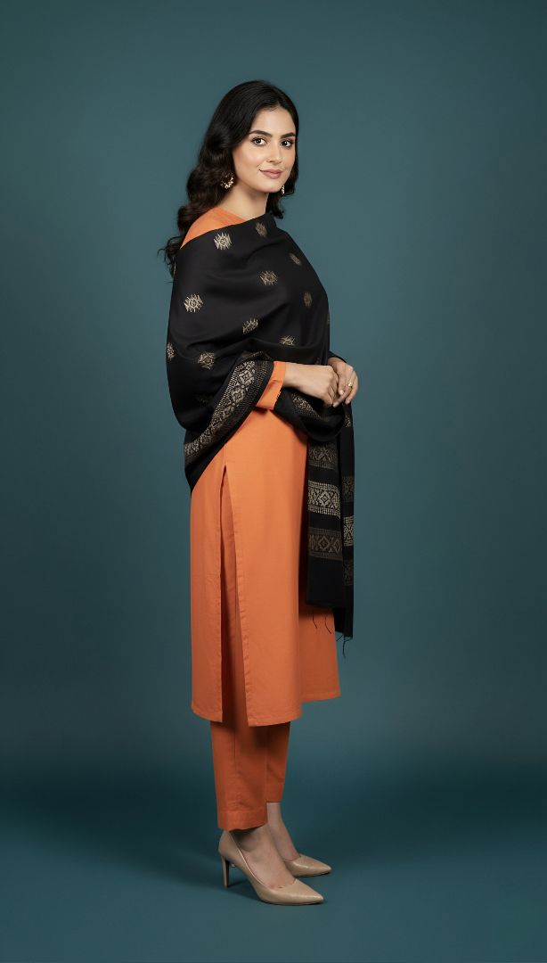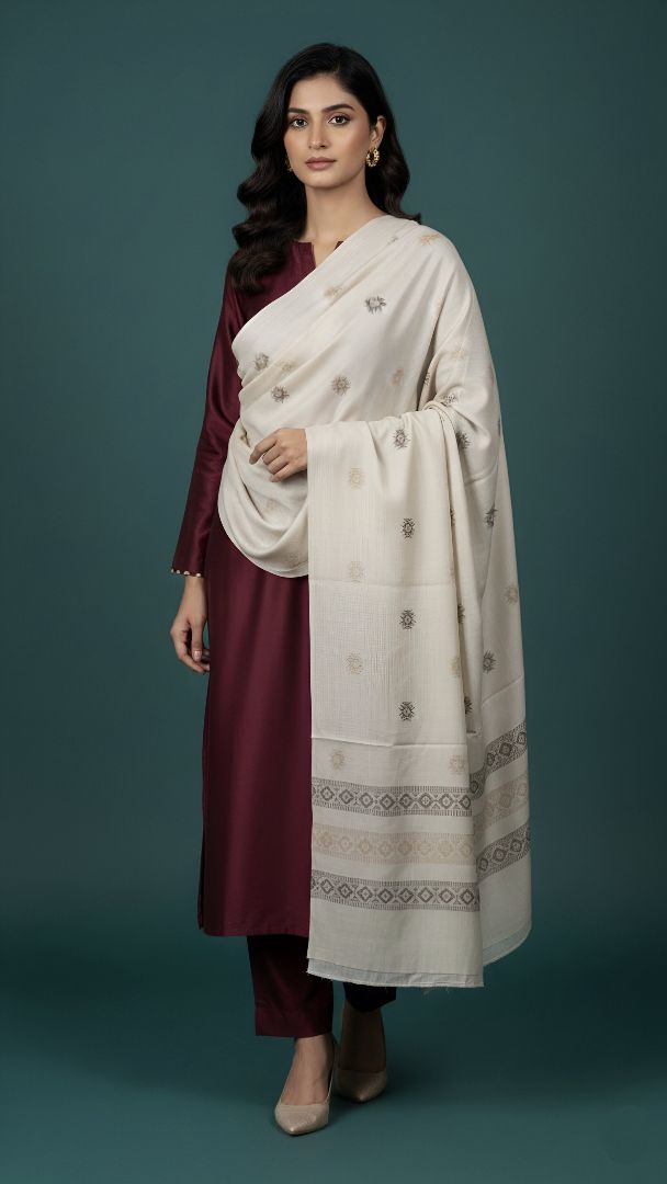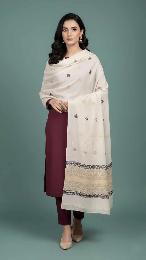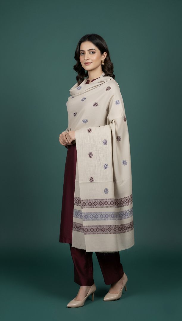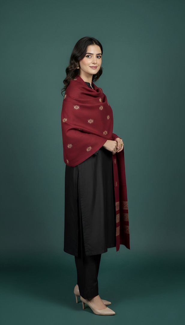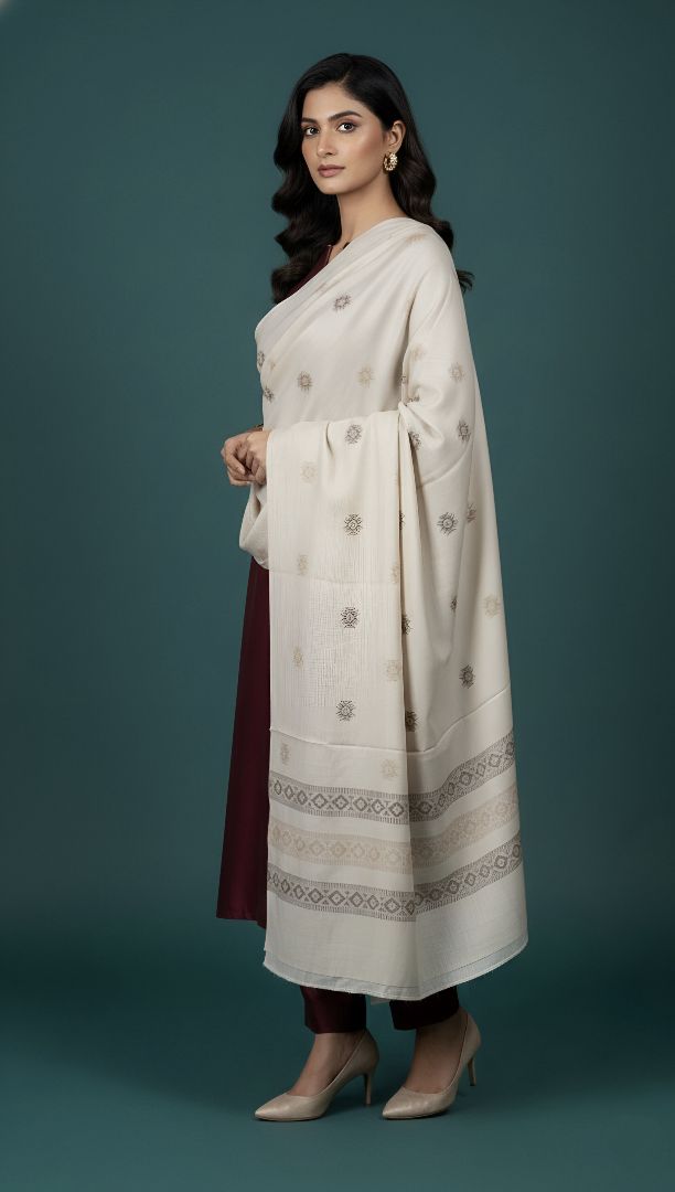 Elevate your ensemble for any occasion and feel the majesty of a Zaryaan Look Shawl. The elaborate Both Side Hand Dora Work demonstrates the skills of talented craftspeople, and the gorgeous 4 Border Design gives a unique touch.