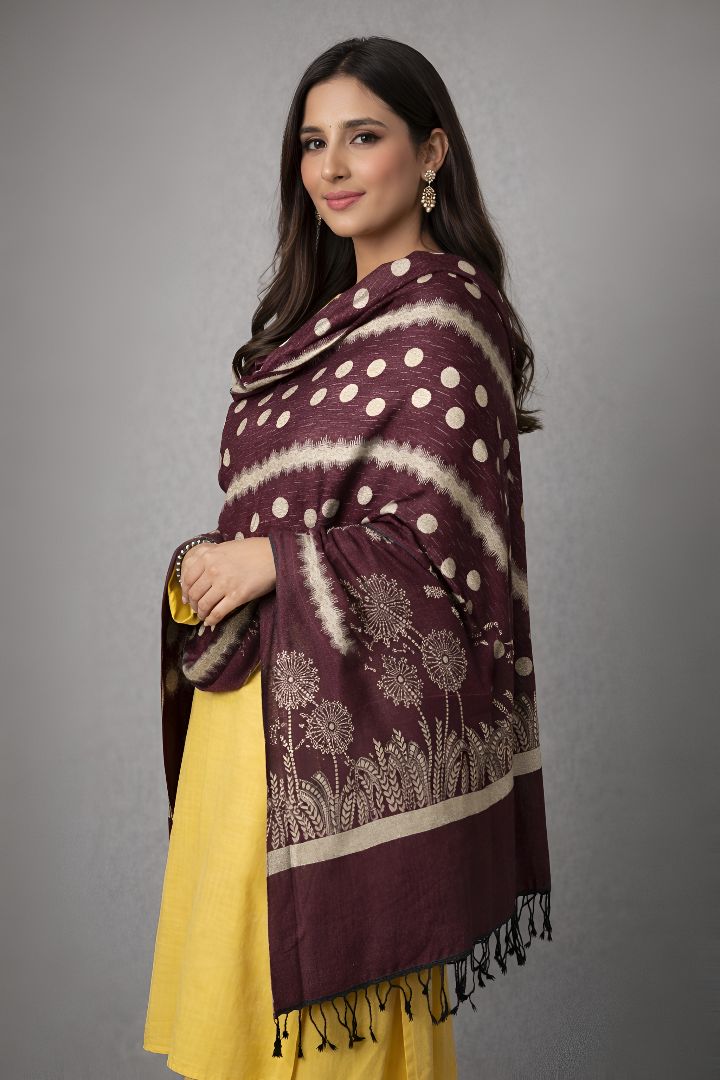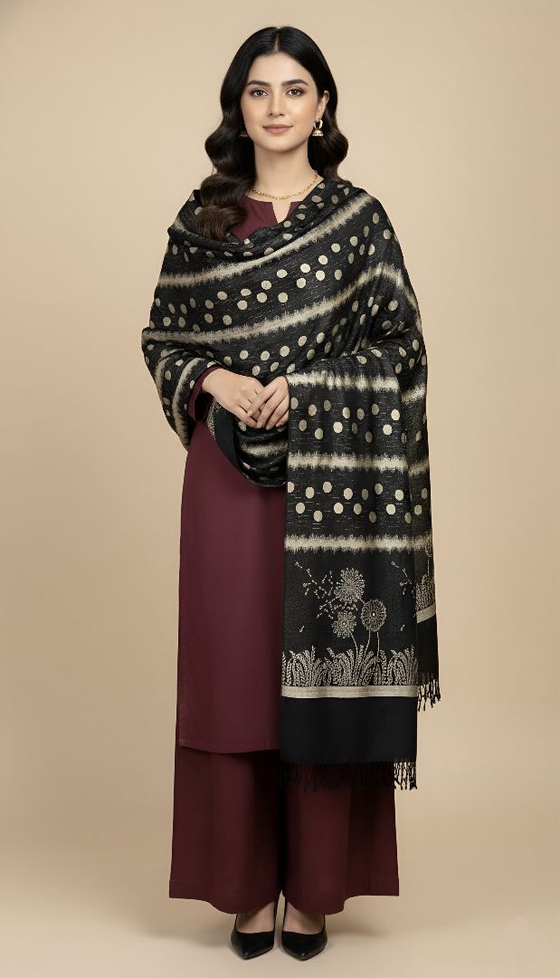 Elevate your ensemble for any occasion and feel the majesty of a Zaryaan Look Shawl. The elaborate Both Side Hand Dora Work demonstrates the skills of talented craftspeople, and the gorgeous 4 Border Design gives a unique touch.